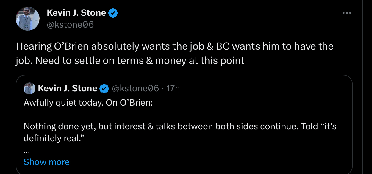 disagree that he'd WANT to remain as the HC of BC, considering it's a pretty mediocre job