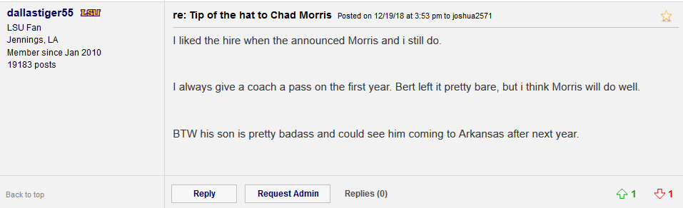 One other thing is LSU was loaded on 4* and 5* players. Also LSU is by far the better football school than Arkansas.