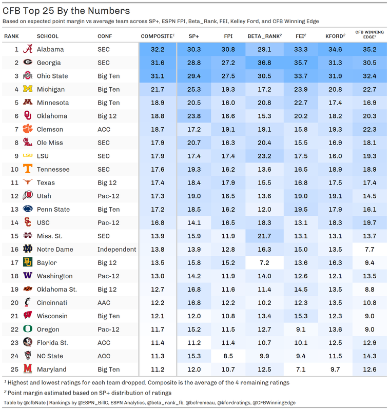 To be fair, every major advanced metric nerds algorithms out there have LSU pretty high, not saying I agree, just pointing it out that it’s not just ESPNs FPI