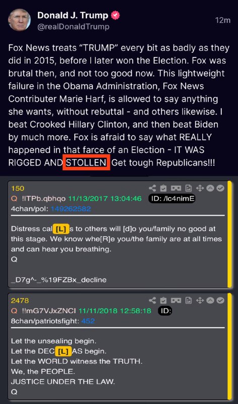Trump being unable to spell “stolen” is actually a proof of Q because of two drops where Q used L’s? Help me with that graphic you posted.