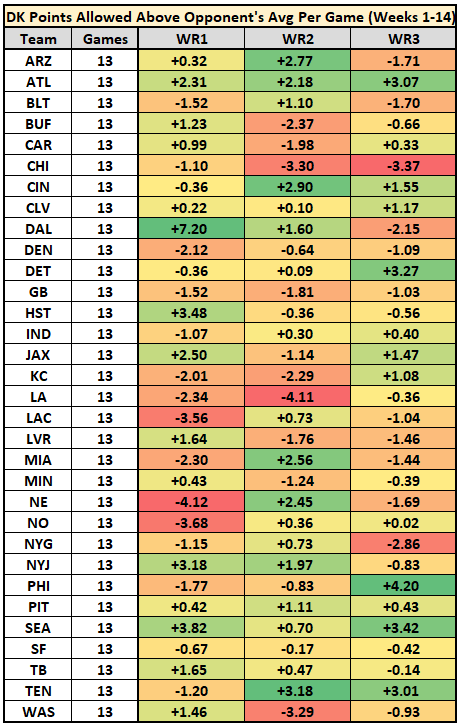 CHANGE in production. In other words, who is getting better or worse at allowing opponent position to score fantasy points.