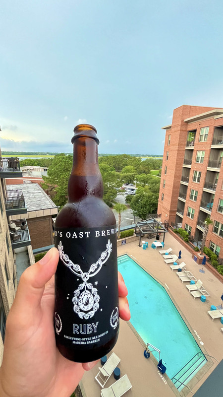 NBD got chased from the pool by this storm. Edmund’s Oast. This one is good. Barleywine aged in Madeira barrels.