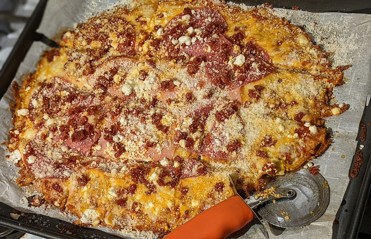 Just dusted off my favorite low carb 3 ingredient pizza crust recipe.