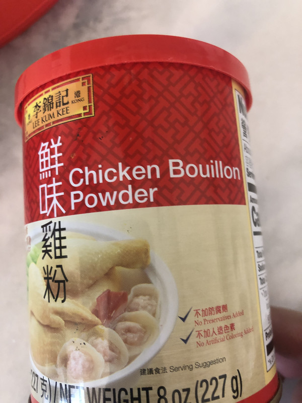 Use a ladle or spatula to break up the rice. Make sure the rice granules are coated by the bacon fat. Stir for a minute or so. Lower the heat and season the rice. I’ve seasoned this dish with salt/fish sauce/soy sauce/chicken bouillon powder individually and in various combinations. IMO the best is just the powder. I use Lee Kum Lee brand.