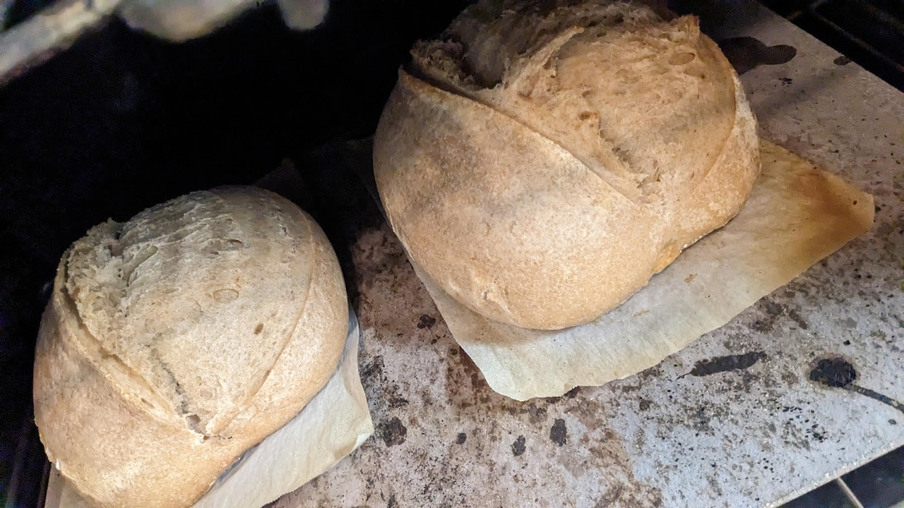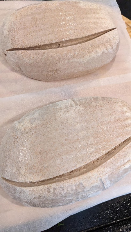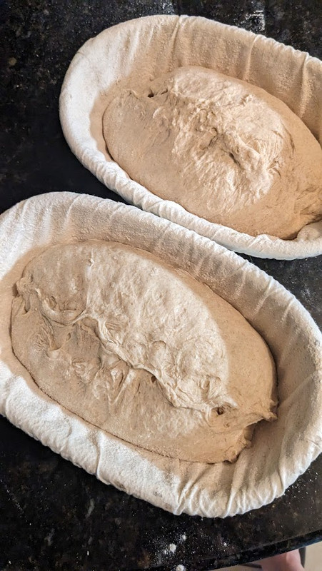 Shape into loaves and put them in floured bannetons for an overnight rise in the fridge