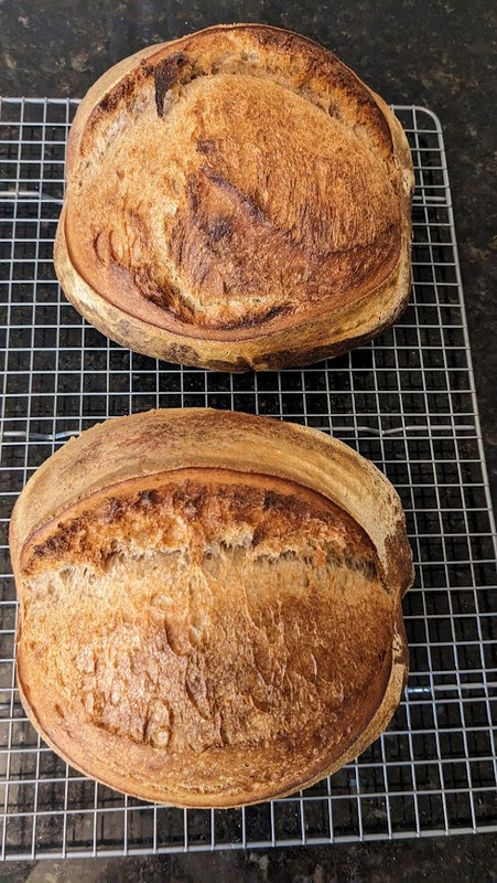 Preheat oven to 500F and introduce steam. After 15 minutes, score them and put in a steamed oven for 20 minutes.