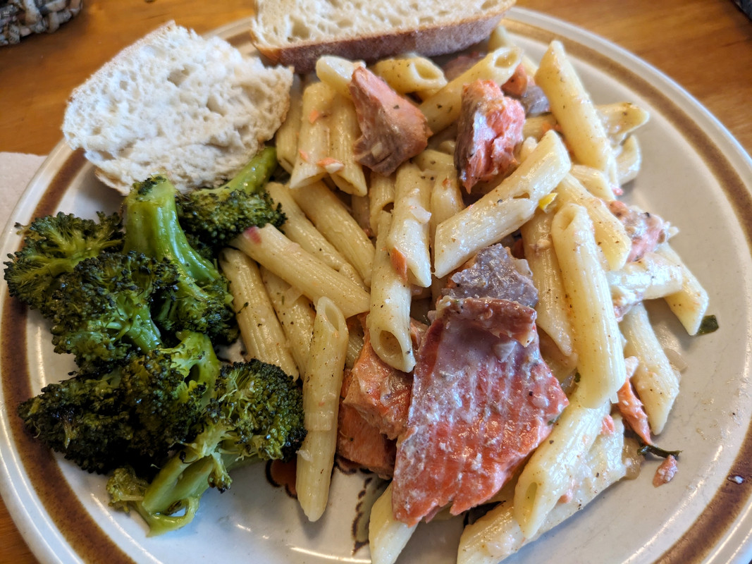 I had leftover mixed seafood pho from Blue Basil, but mostly broth, so I added more shrimp, mushrooms, and an egg. No noodles.