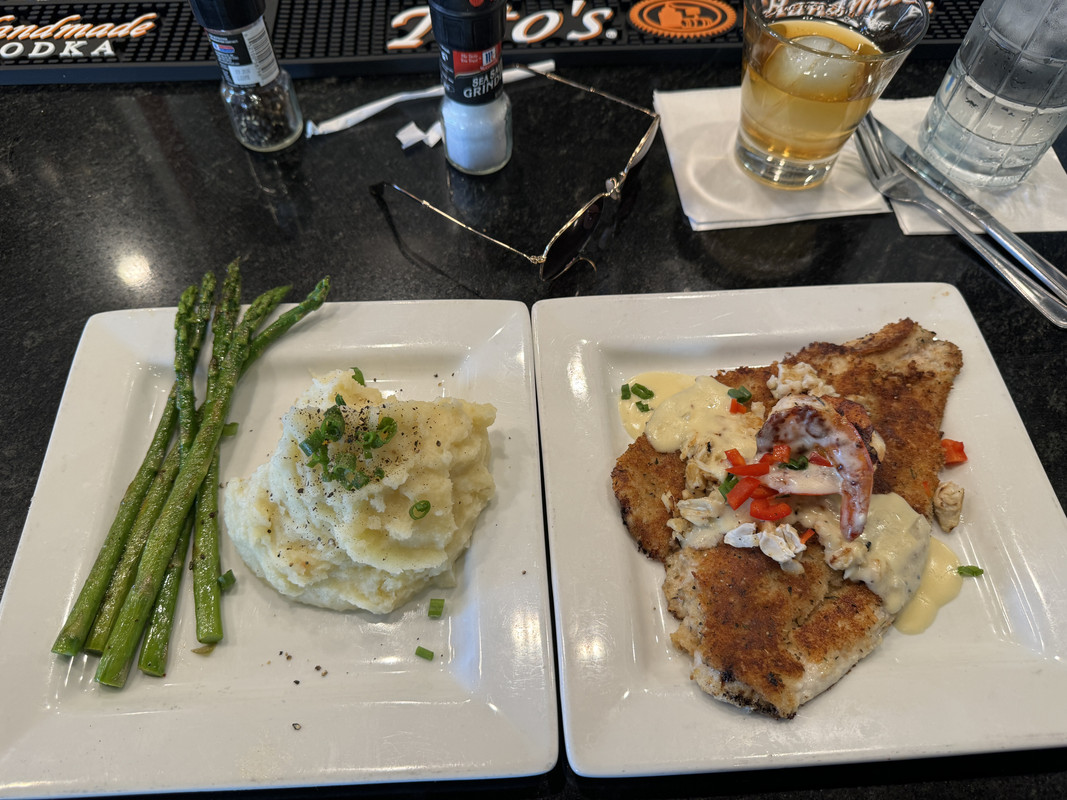 parm crusted Texas redfish with some kinda sauce