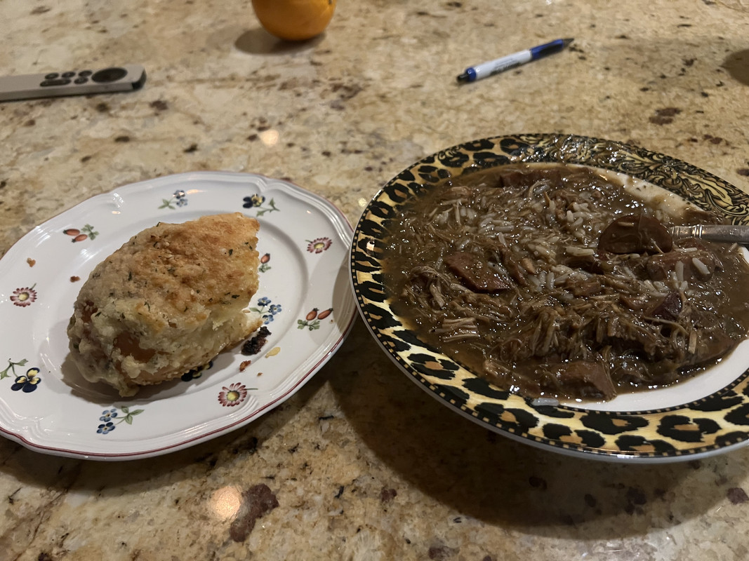 Baked some chicken, taters, gravy and fake crab salad. :)
