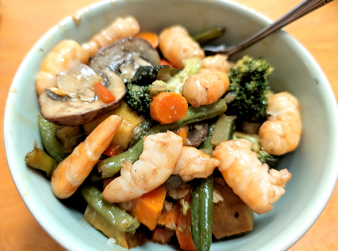 I made a shrimp and crab stew. Shrimp, Crab Bodies, Crab Claws, Crab Meat and some potatos and carrots leftover from the boil.