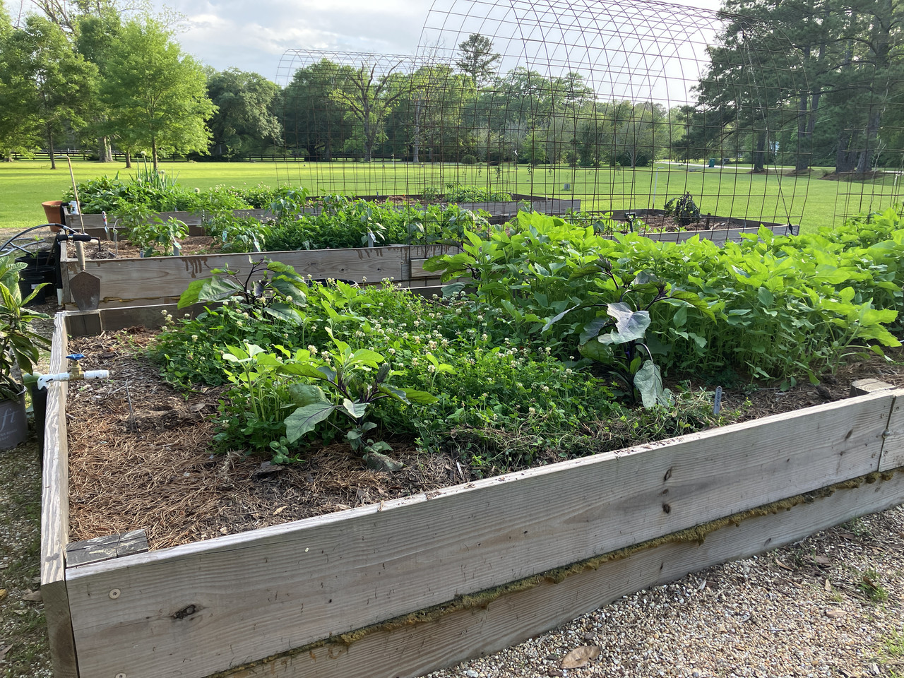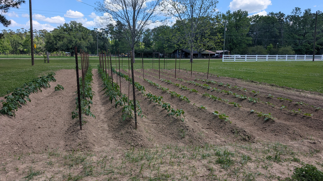 I planted probably the second week of February. Started slow, but things moving now. Got some Sun Sugar and Sugar Rush cherry tomatoes starting to ripen. Larger tomatoes starting to really put on fruit. Violet Delight eggplants finally flowering after a very slow start. Some 4” long banana peppers. Sugar snap peas being inundated with powdery mildew. Harvested yellow squash three times already.