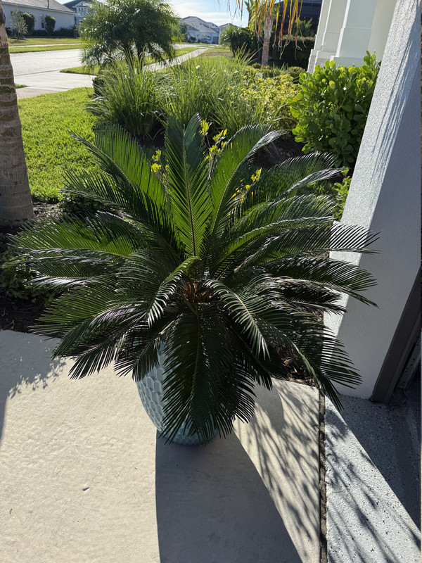 I cleaned my pool cage today and had to move my potted plant out of the way. I didnt realize how big this Sago Palm had gotten but I think it is about as big as its going to get in this pot. It has been a great thing to have around my pool because it does not make any mess and its basically maintenance free. I water it every once in a while and fertilize on occasion.