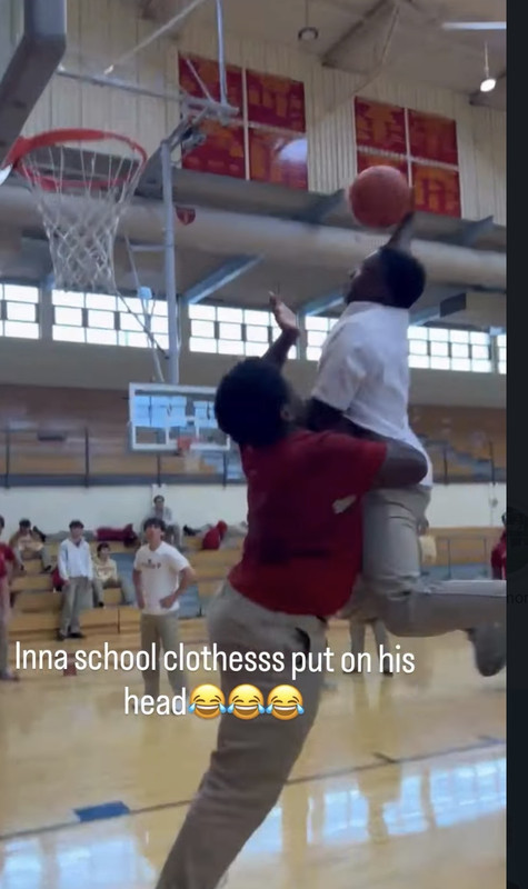 He successfully dunk this. In school clothes
