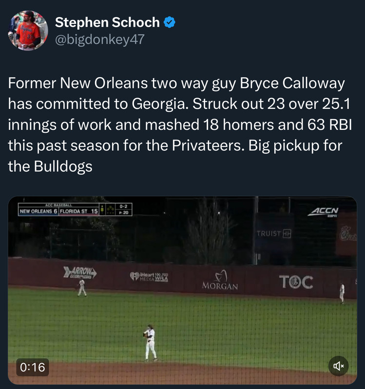 Going to Georgia. LSU probably didn't want to spend the money it would take to get him for a high K rate guy in the Southland conference. Especially getting Serna to campus there really wasn't a point to take him.