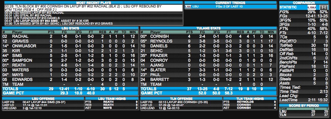 Tulane up 37-29 at halftime. We are 1 for 10 from 3 and 4 for 10 from the line. 5 players with 2 fouls in 1st half. Shooting just under 30% from floor. Tulane 52%.