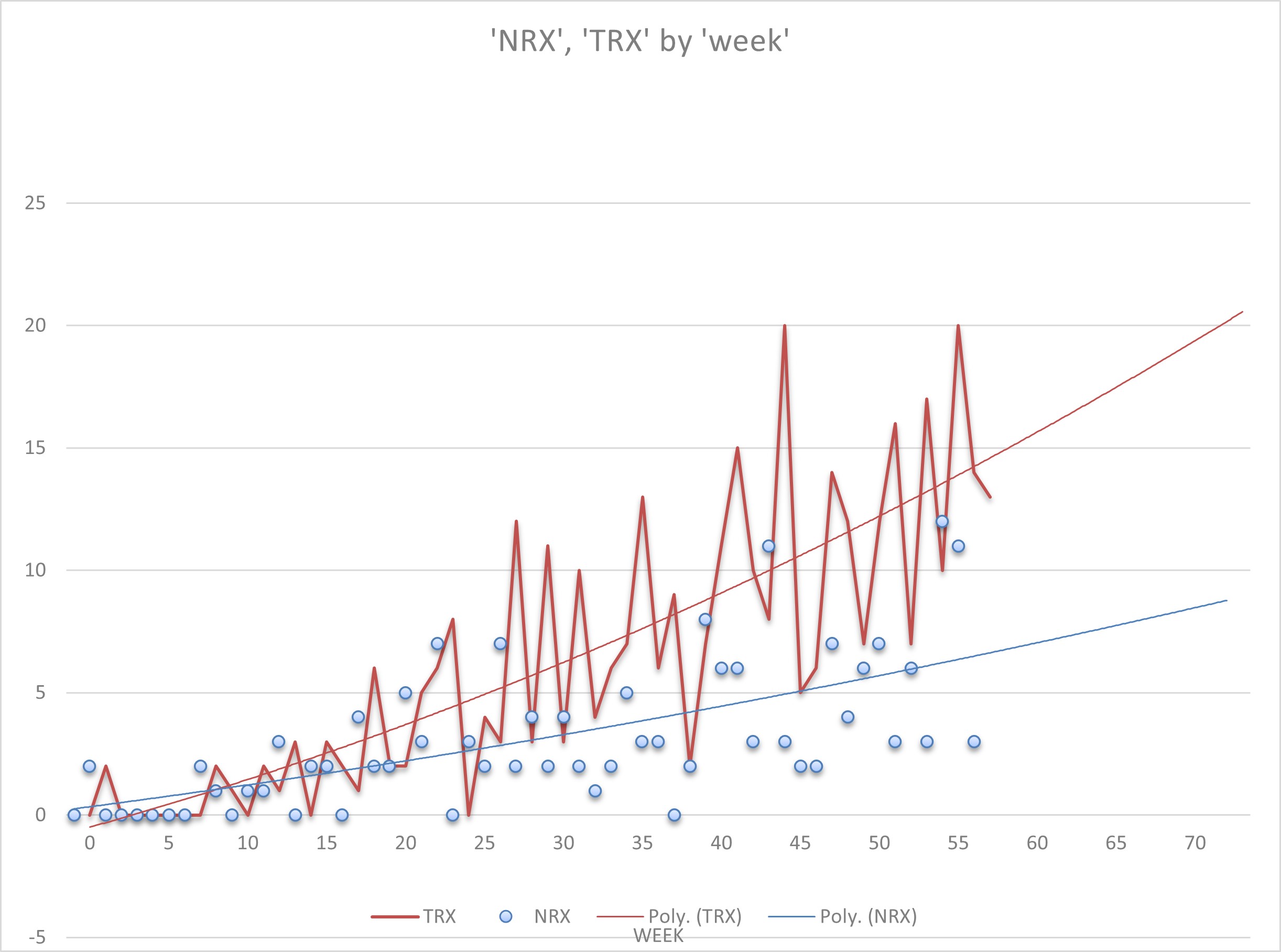 As much as I don't want to give Peter any leash, those numbers do bear out that Omicron put the brakes on them bigtime.. that, or, the fall in Rx started right around the time the buyout rumors picked up. Sales force may have just said "frick it"