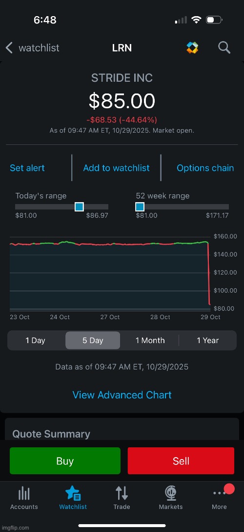 Been having a buy order for LRN at $125