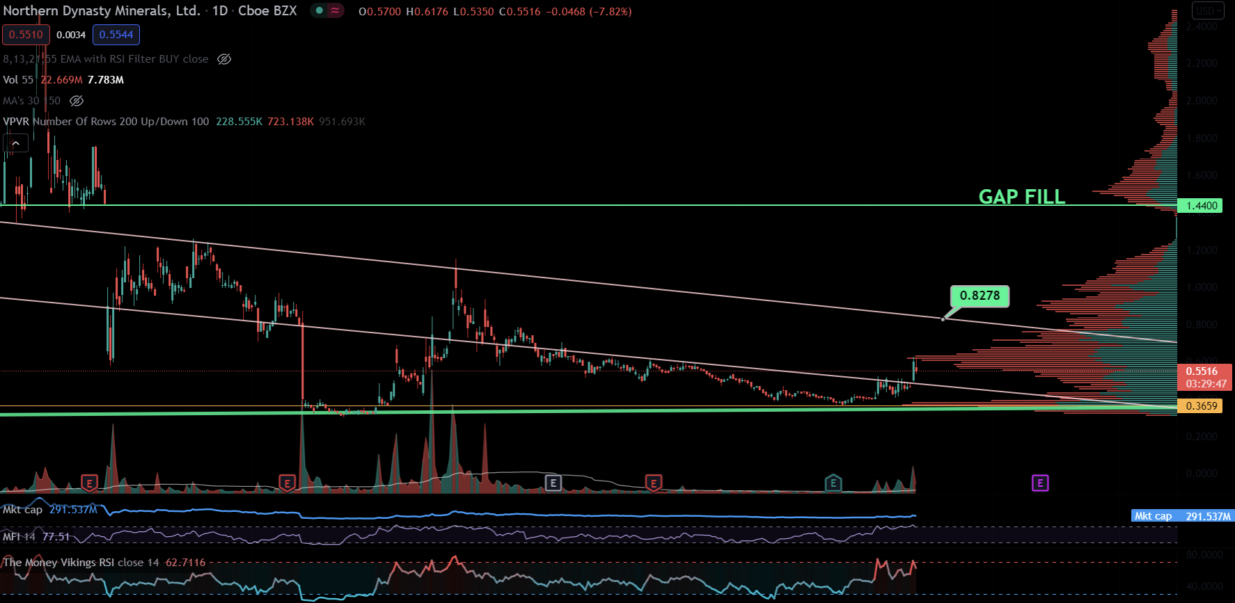$NAK on watch...she's starting to look like the CEI setup, which is really starting to rip today. NAK could make a move to $1-$1.50 area based on technicals alone.