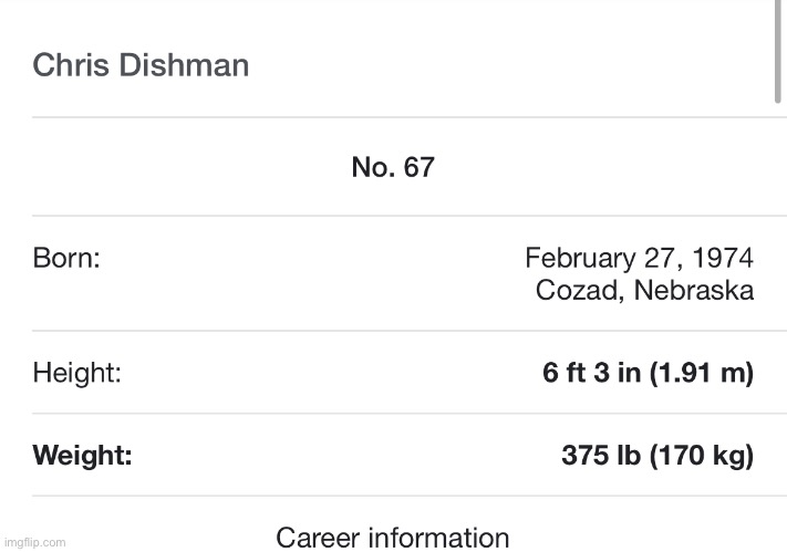 Chris Dishman wasn’t that large in 1995. He blew up in the NFL.