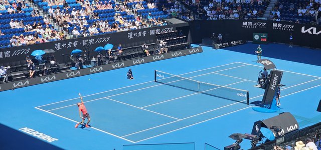It says 8:10pm here but I don't see it. Likey 9pm at minimum. So if that's a long match we'll be here past midnight and we got here at 11am