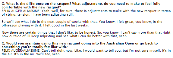 Supposedly he went back to his old racket before or after AO and now he magically remembered how to play tennis.
