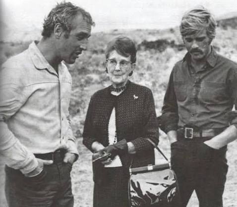 Paul Newman & Robert Redford, with Lula Parker (Butch Cassidy’s last surviving sibling) on set 1968.