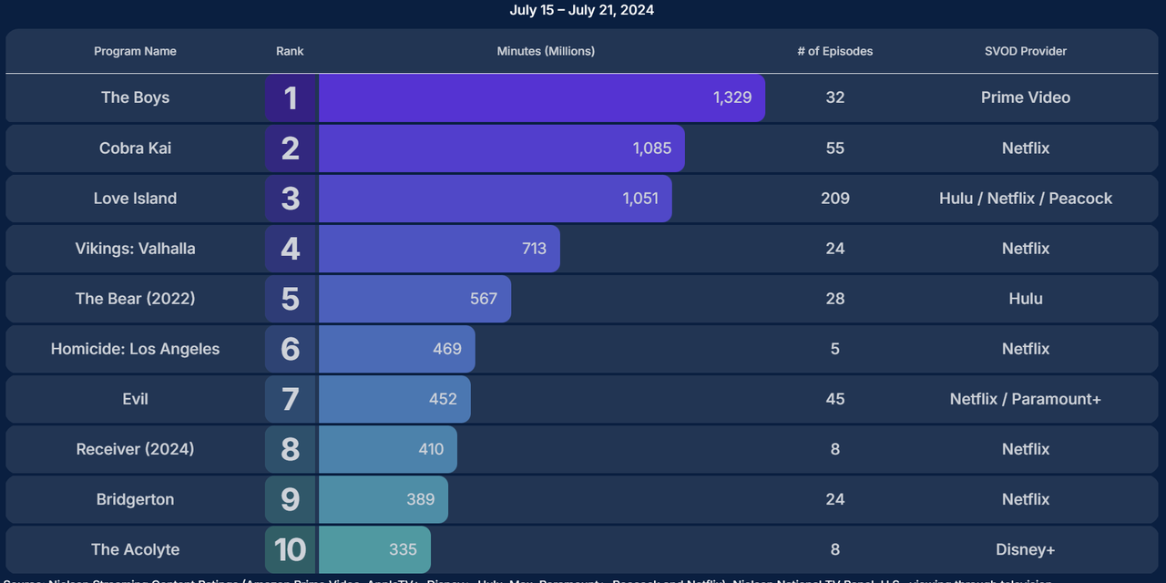 Bridgerton number surprises me. With how much my wife and every woman at work talks about it, you would think it’s the most popular show ever