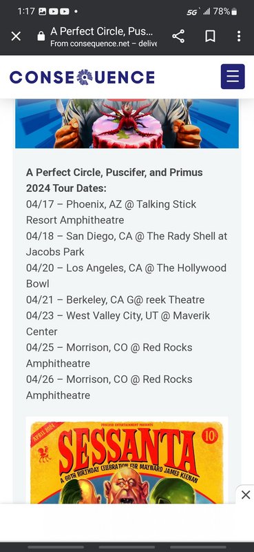 I've seen A Perfect Circle twice, Puscifer once, and I saw Primus when they opened for Tool. Cool line-up, but I'm good.