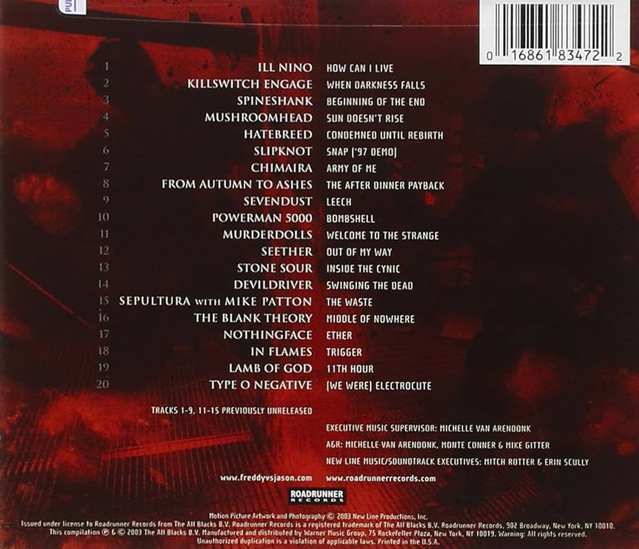 How many of you listened to the Freddy vs Jason soundtrack (which came out 20 years ago)? I remember that it turned me on to some great bands I had not heard before (Killswitch Engage, Ill Niño, Spineshank, etc.) and bands that I was already familiar with (Sevendust and Seether) was overall just a badass soundtrack that any metalhead would love and play over and over again.