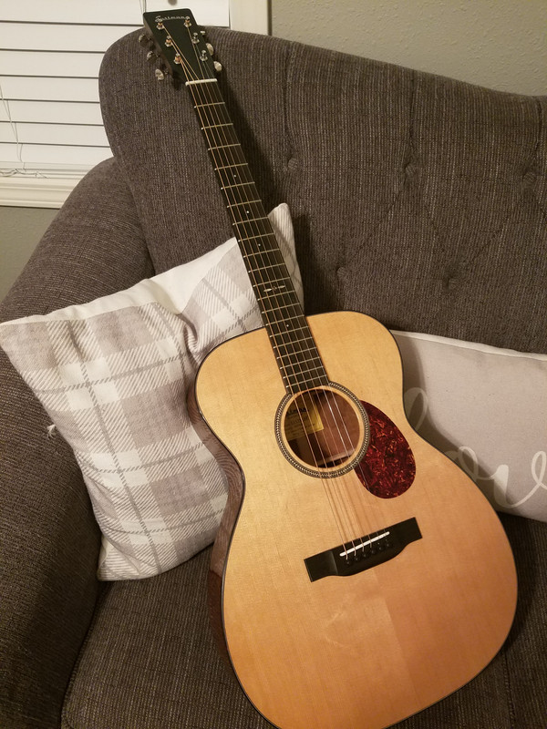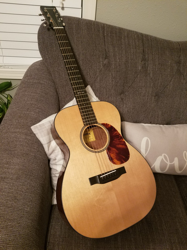 Like the length.... since I always get pick and little finger wear in that above the bridge area. If it's not glued down you might recenter the hole so the pickguard's more centered.