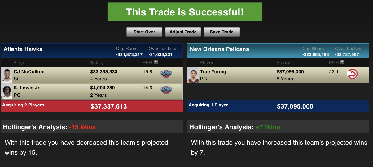 This team needs a TRUE point guard that can score and assist. Zion is never available so take that into account, trae works well with BI and Zion