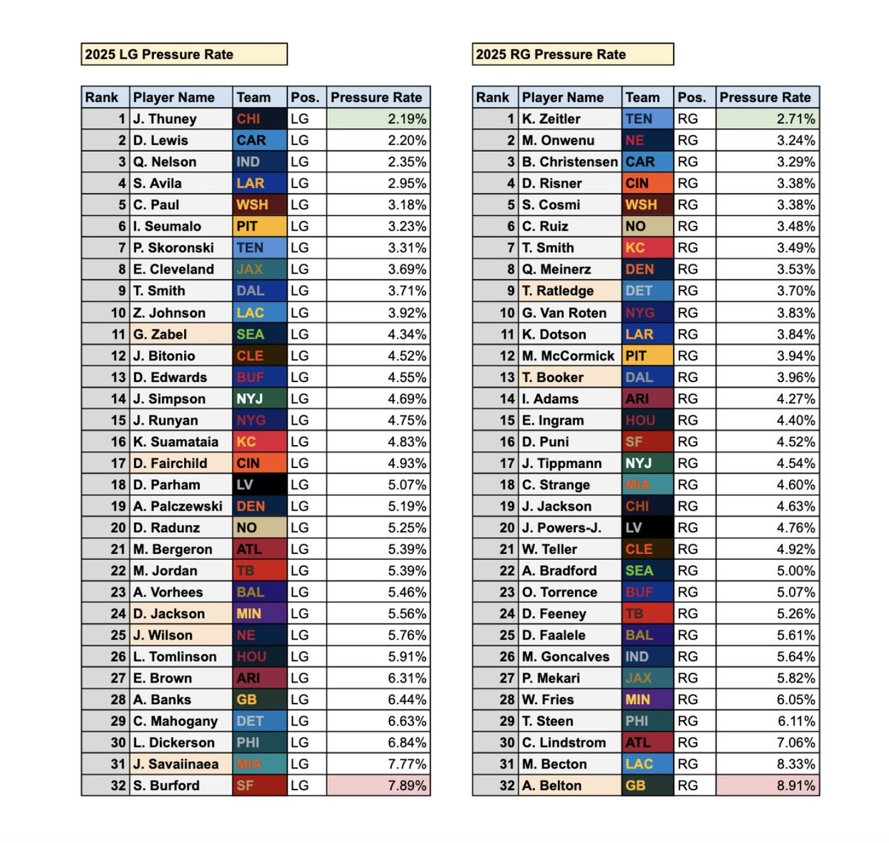 This is a bit disappointing giving the capital invested in the tackles. Yes they’re young and can improve but you’d at least hope they were in the top half of these lists. We also know they’re left on an island a lot.