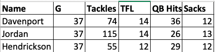 Davenport is playing right end and should be your speed rusher. He should have more sacks than cam had