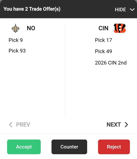 To trade down and acquire picks, the Saints don’t seem to attract any interest. Could be Loomis’ reputation for going up or other organizations just don’t want to help the Saints.