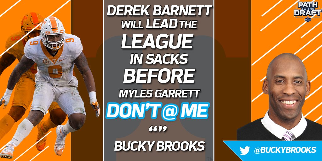 I don't feel Barnett at 11. I've been on the Reuben Foster train, but he may be more of an idiot than I realized. But my rationalization remains the same... there is not a huge gap, if any gap between Barnett and the pass rushers available at 32/42. So take a baller at 11, Foster, McAffery, etc