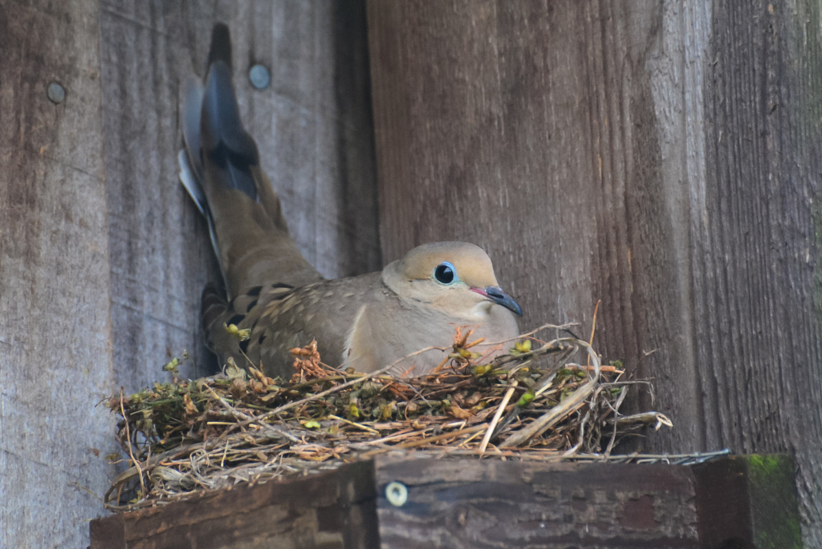 And a the year before that this dove built around the corner of the same building on a useless European Starling trap I built. That's a remarkably well-constructed nest for a dove.