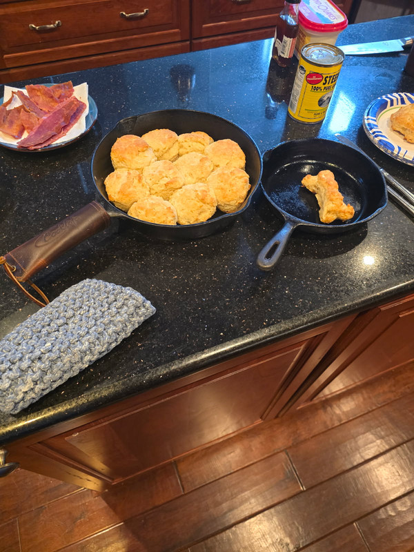 We call call it a "Camp Breakfast"........Biscuits, fried eggs over easy, bacon and cheese all cooked on a griddle outside on the back deck