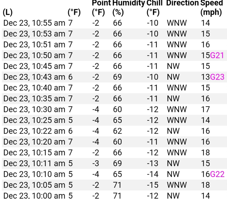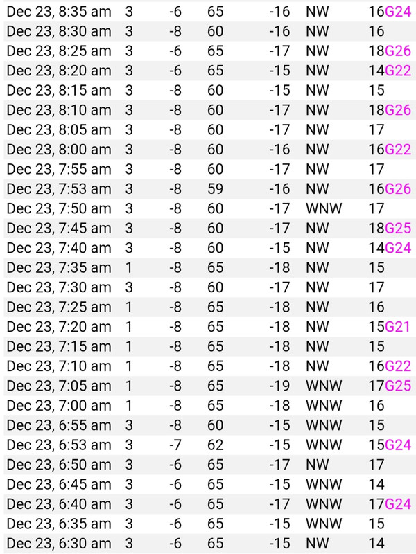 The locals and even the NWS are sticking to their high temp forecast of ~16°. I just don't see it.