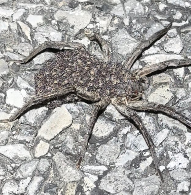 Wait until you win the lottery and find one with a couple hundred baby wolf spiders on its back. That's where they keep them.....on their back, by the hundreds......like a big spider clown car full of little nightmares.