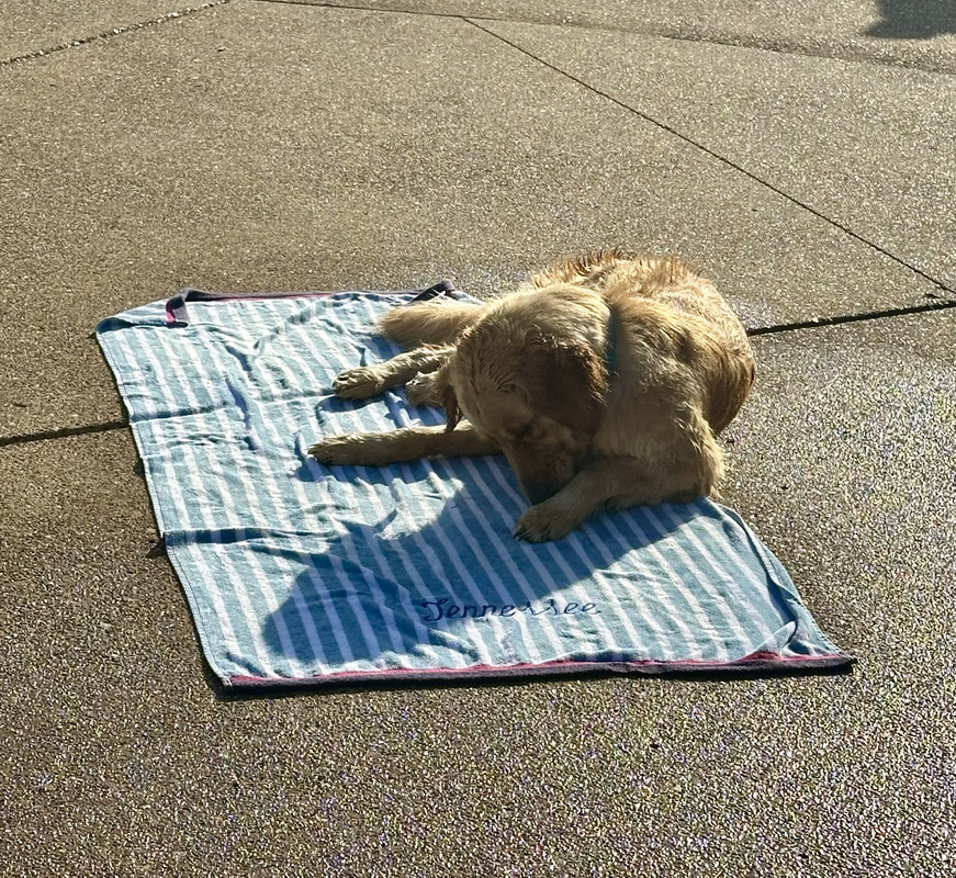 I put her in the pool yesterday and she promptly got out and went and laid on a towel to dry off.