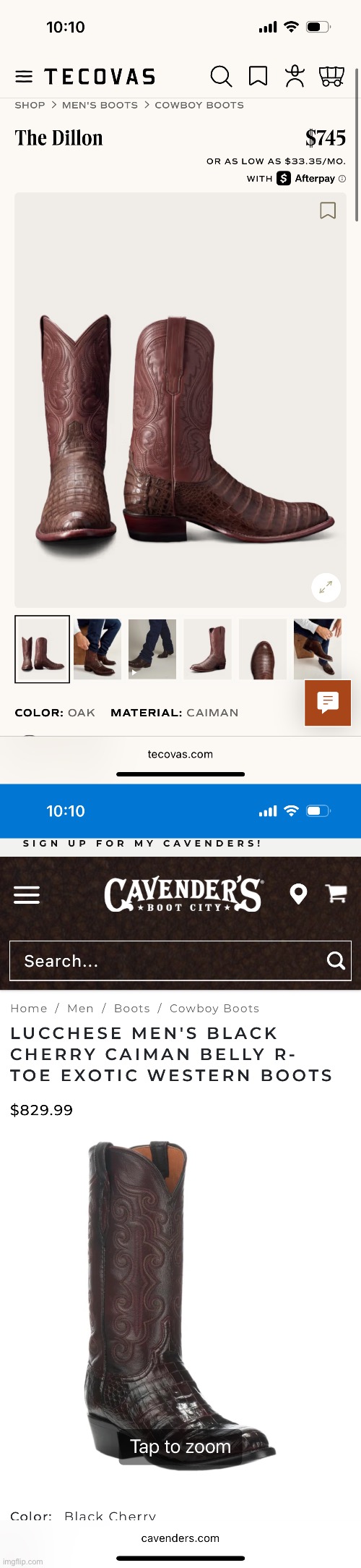 But a Tecovas full quill at $550 or a Tecovas caiman at $750?