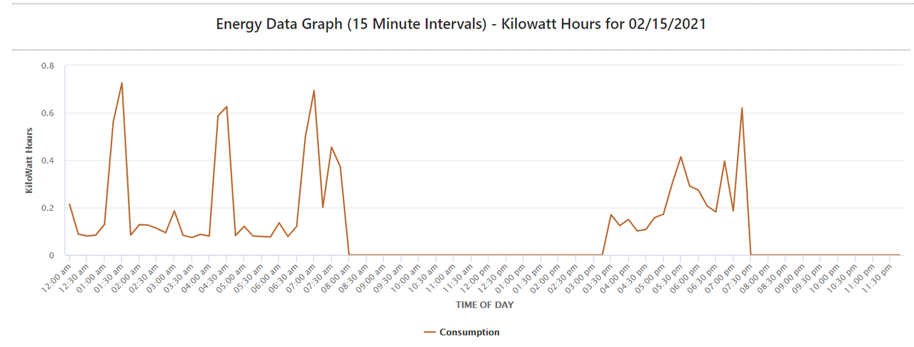 So this shows when I lost power Monday morning at 740am, then got it back at 330pm then lost again at 730pm and been dark ever since without any power.