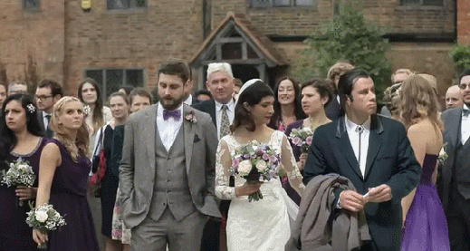 Blonde beside the bride has poor firearm handling skills. She bout to cap the bitch on her wedding day.