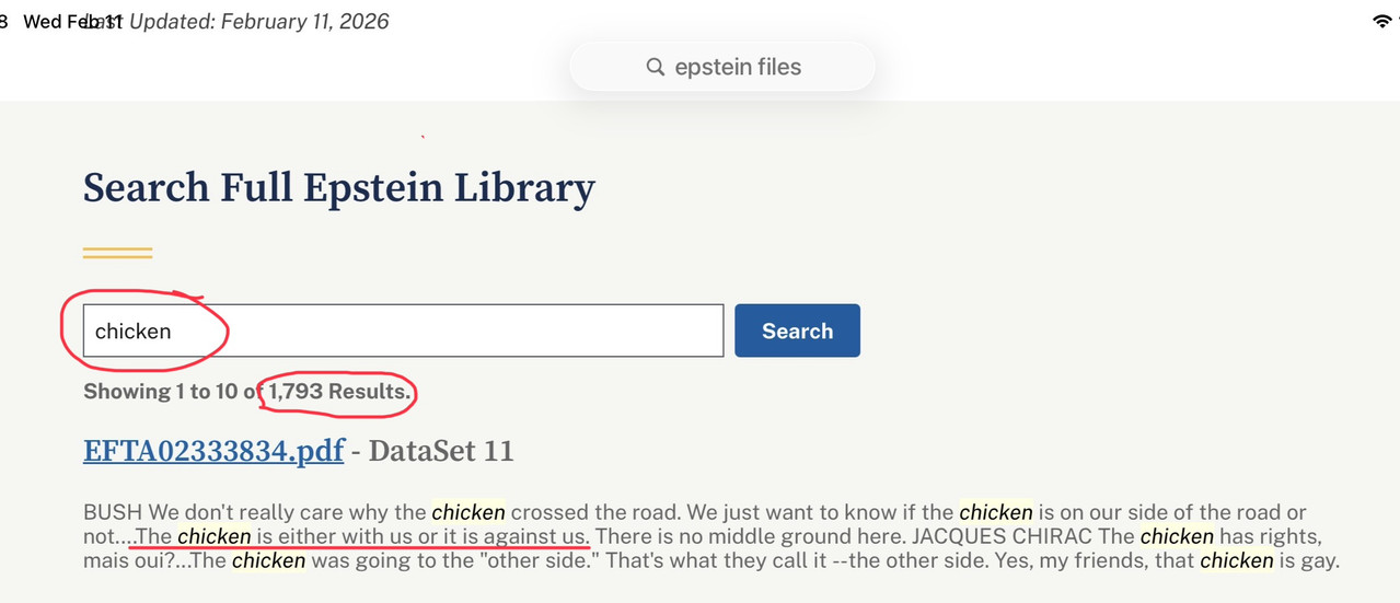 It’s really time for the country to move on from the Epstein case. Nobody cares anymore. The Dow is over 50,000.
