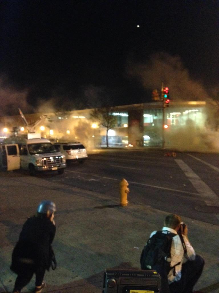 Fire beside Pratt library was not caused by Molotov cocktail. The teargas grenade landed on trash and its sparks set the fire. Watched it.