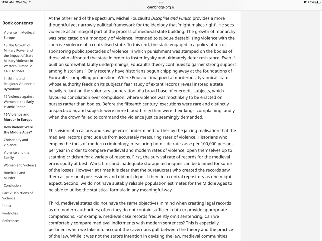 You made the claim that medieval times were safer because of punishment.