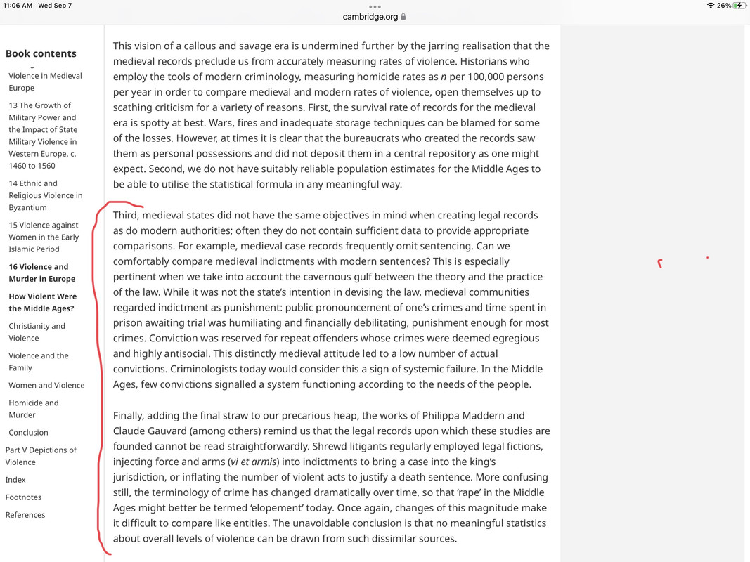 Of course you did leave out an apples to apples comparison with the murder rate for modern London being lower than medieval London.