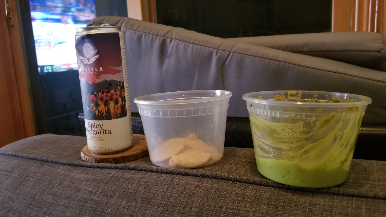 Rice crackers, guac, and some weird drink I just found in my fridge.