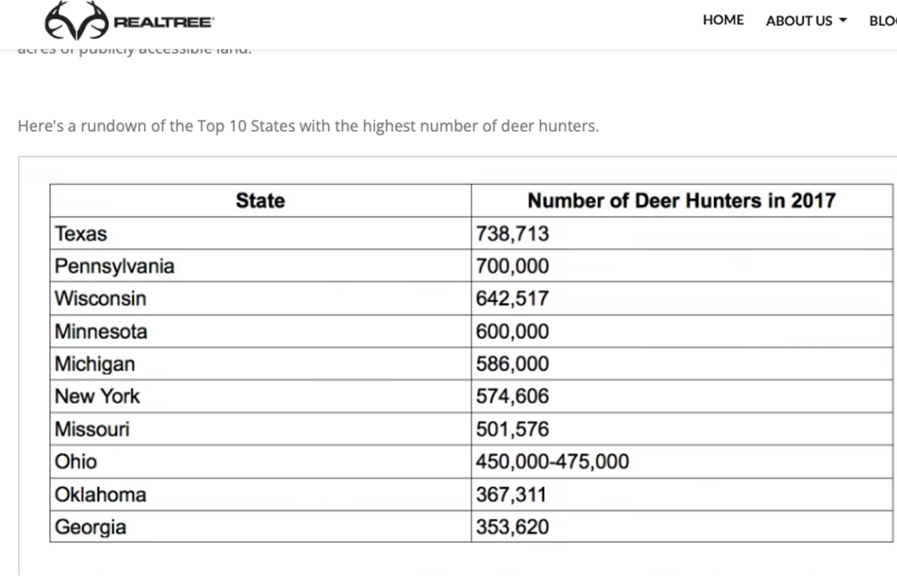 According to this article, LA isn't a top 10 state for deer hunting (though again Wisconsin representing).