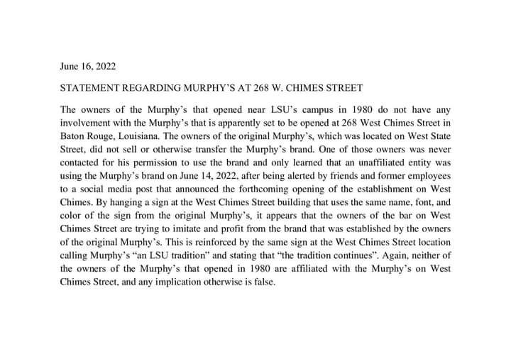 re: Murphy's is apparently coming back